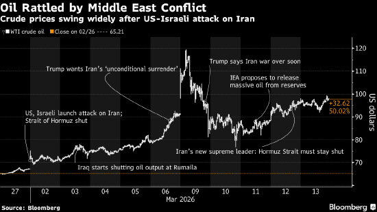 在好意思国和以色列运行轰炸伊朗后的第一周,油价上升了约30%,但跟着周末的报说念运行更全面地展示该地区原油产量的下降,投资者心焦感情在周一开盘前赶紧堆积。开盘仅几分钟,WTI涨幅就跨越了10%。