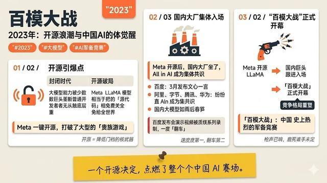 与此同期,Meta文书开源LLaMA模子,相配于把AI的”源代码”免费发给全天下。国内也坐不住了:百度在3月发布文心一言(发布会献艺示视频被质疑是预录制的,一度激发”翻车”风云);阿里、字节、腾讯、华为纷繁文书All in AI,一时候国内大模子如连车平斗,”百模大战”慎重开幕。
