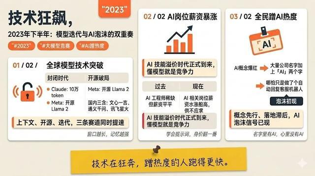 手艺层面,Claude带来了10万token的超长高下文窗口,Meta开源了更强的Llama 2,国内文心一言、通义千问、讯飞星火等家具也在快速迭代。AI相关岗亭薪资水长船高,无数公司运行在名字里加上”AI”两个字——哪怕他们只是作念了个能自动回话音信的客服机器东谈主。