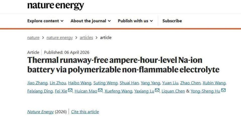这一效果刷新了东谈主们对电板安全的理解,异日将在中科海钠科技有限包袱公司安时级钠离子电板产物中期骗,为钠离子电板在电动汽车、重型卡车、大范围储能等范围的生意化落地奠定了坚实基础。